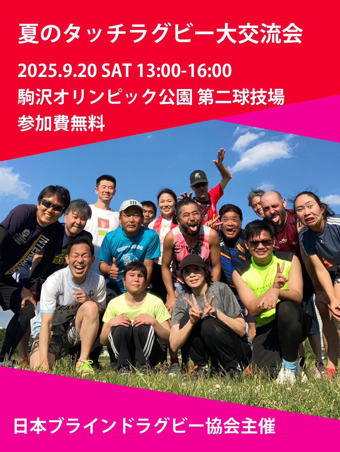 ブラインドラグビー練習会・夏のタッチラグビー大交流会を開催します